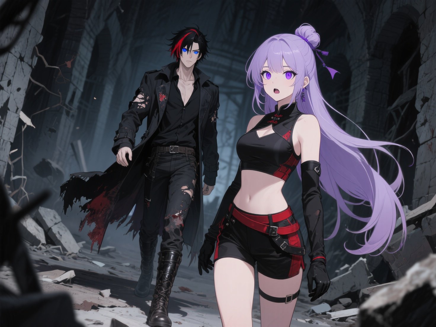 Encostada contra uma coluna caída estava uma mulher de cabelos lilás claros, presos de forma simples. O uniforme de combate estava danificado, e a respiração irregular denunciava o cansaço extremo. Os olhos violetas se abriram lentamente.