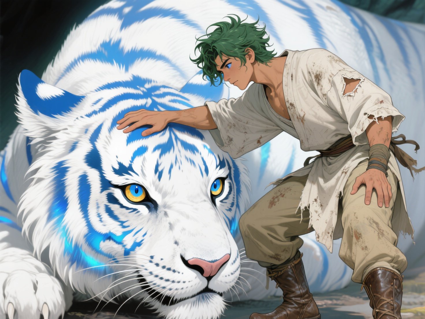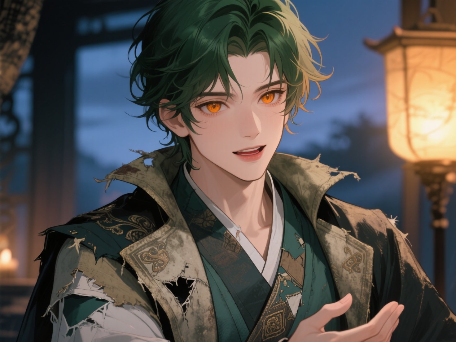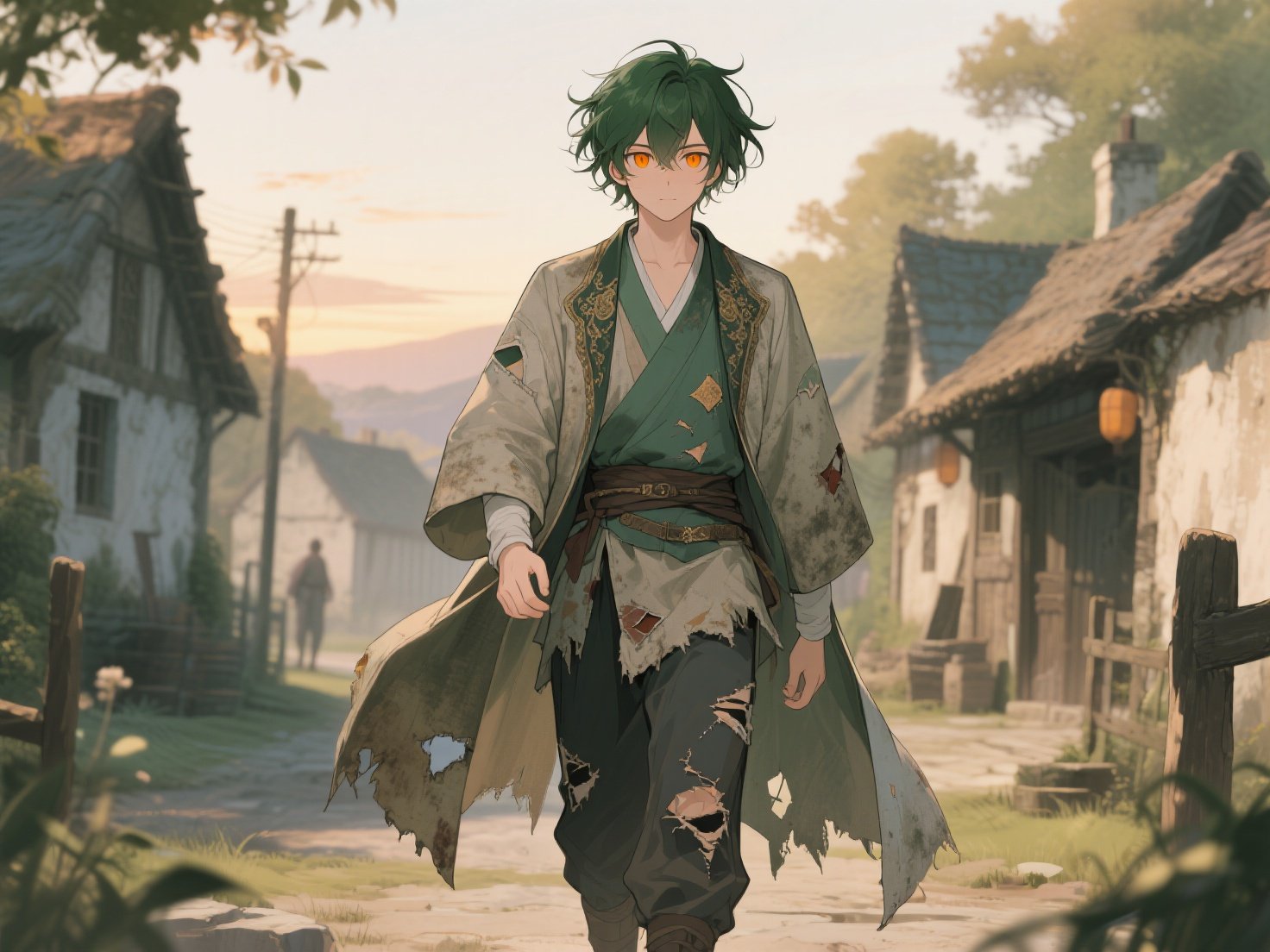 Ele respira fundo, o vento batendo em seus cabelos verdes.
