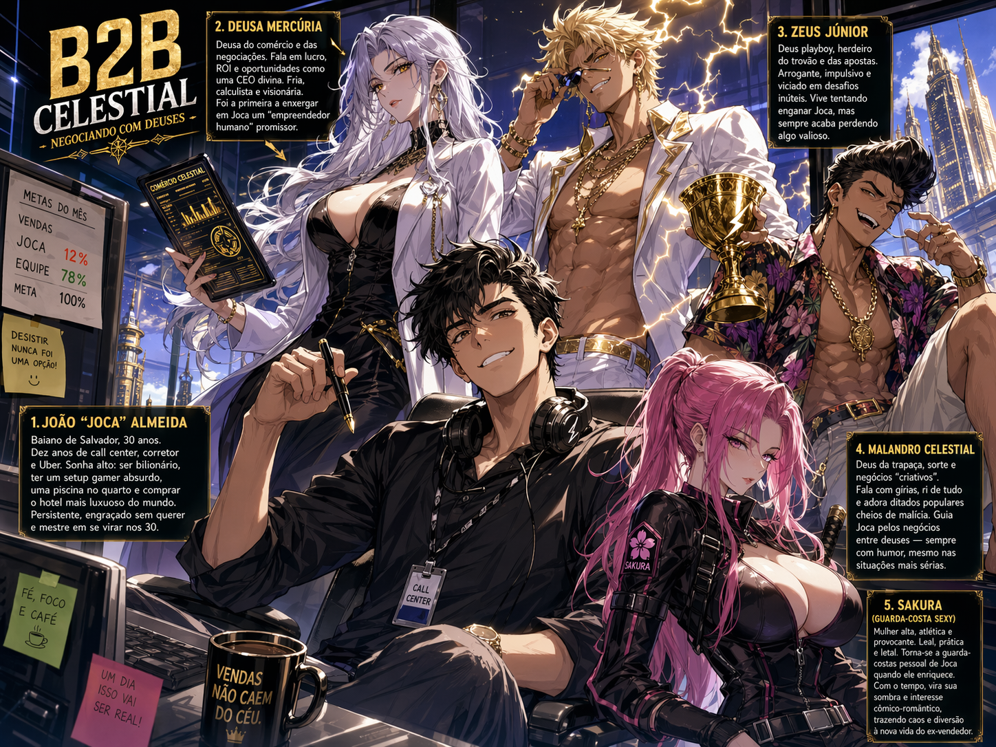 B2B Celestial: Negociando com Deuses é uma obra de ficção original publicada em formato de light novel. Todo o conteúdo é autoral, criado por Abraham Costa, e protegido por direitos autorais.